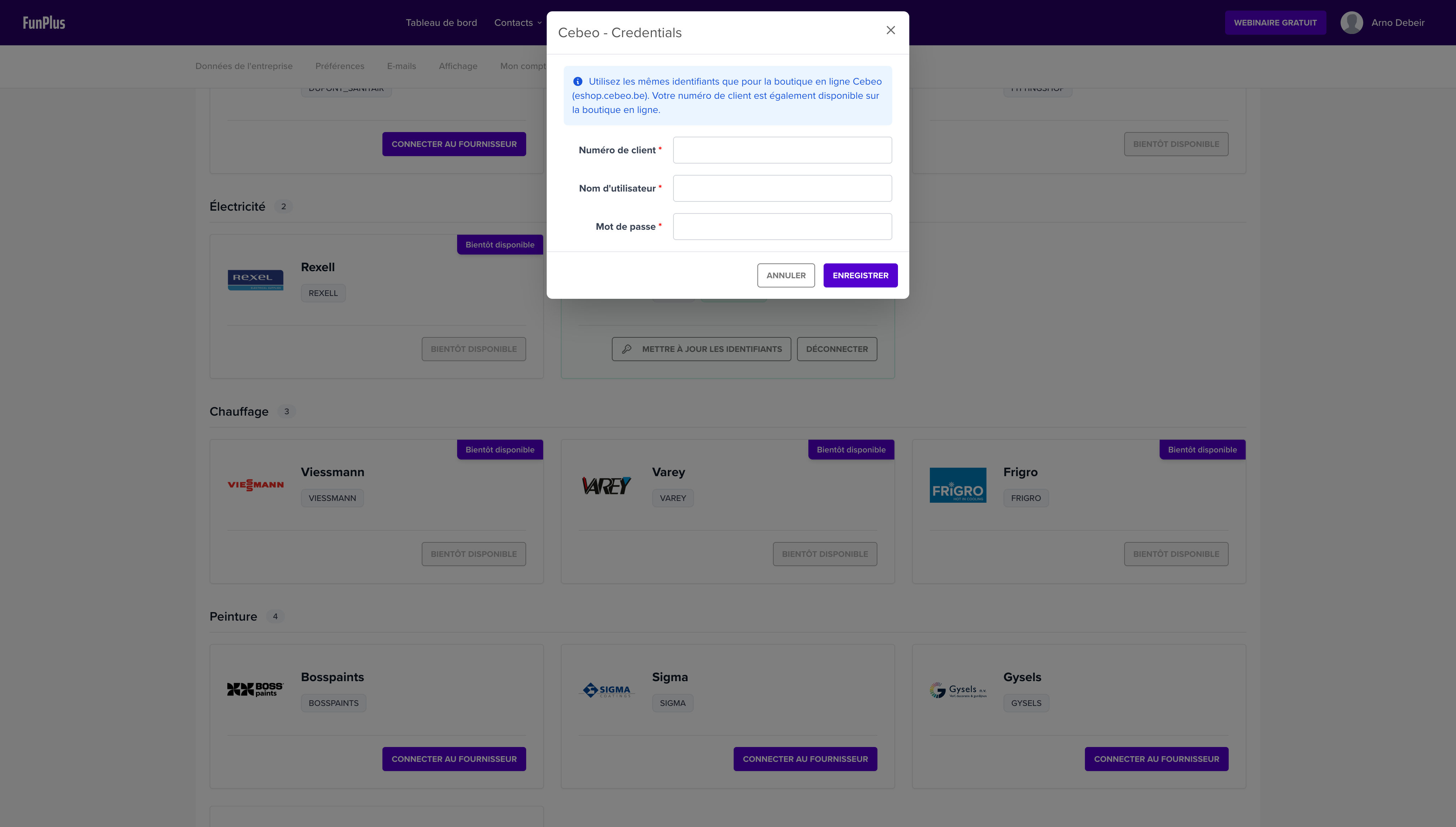 Attention : Ce sont les mêmes identifiants avec lesquels vous vous connectez à la boutique web de votre fournisseur (par ex. eshop.cebeo.be).