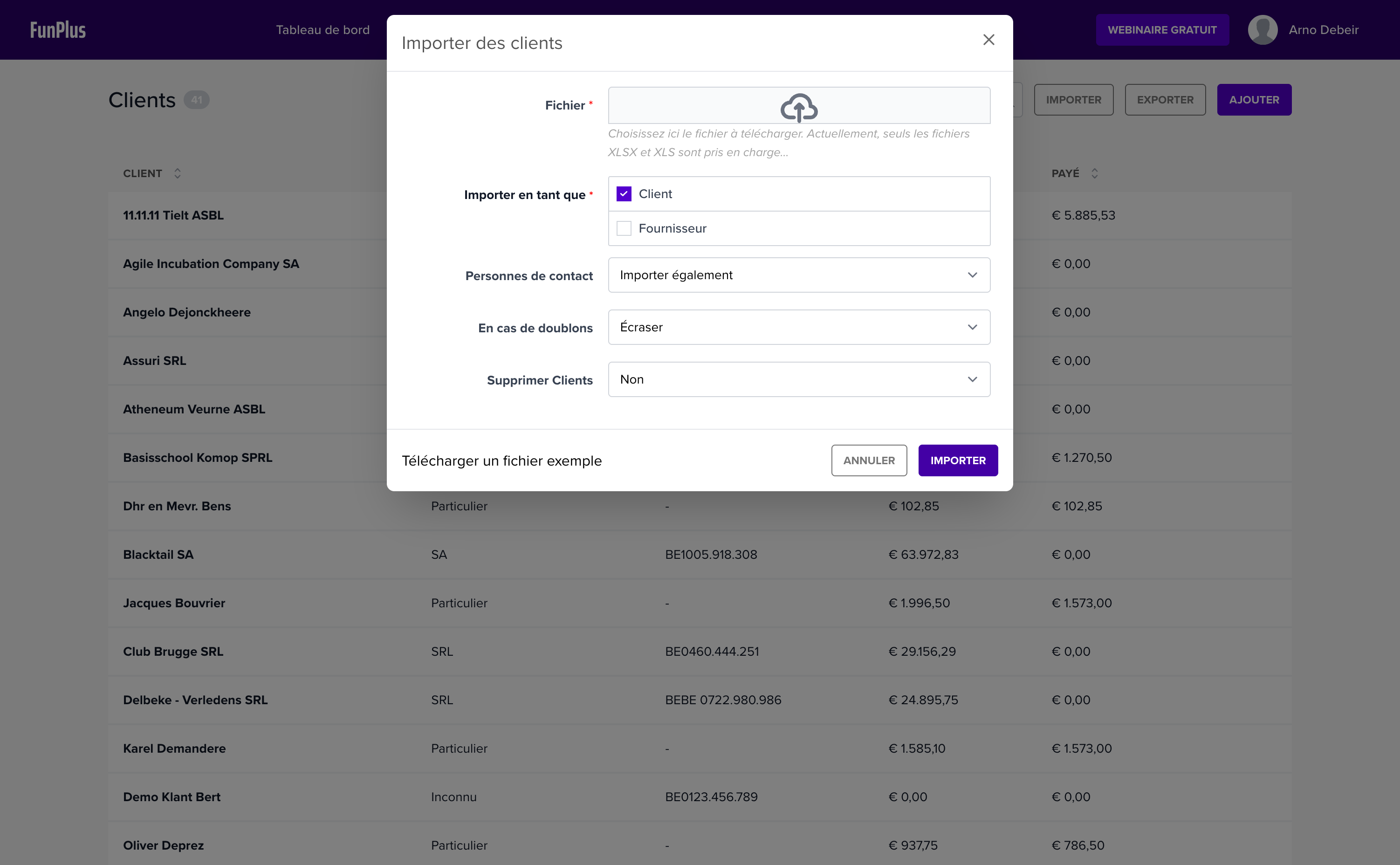 Vous souhaitez ajouter rapidement plusieurs clients à votre compte ? Dans NumNum Knowledge Base, il est facile d’importer une liste de clients via un fichier Excel (XLSX ou XLS).