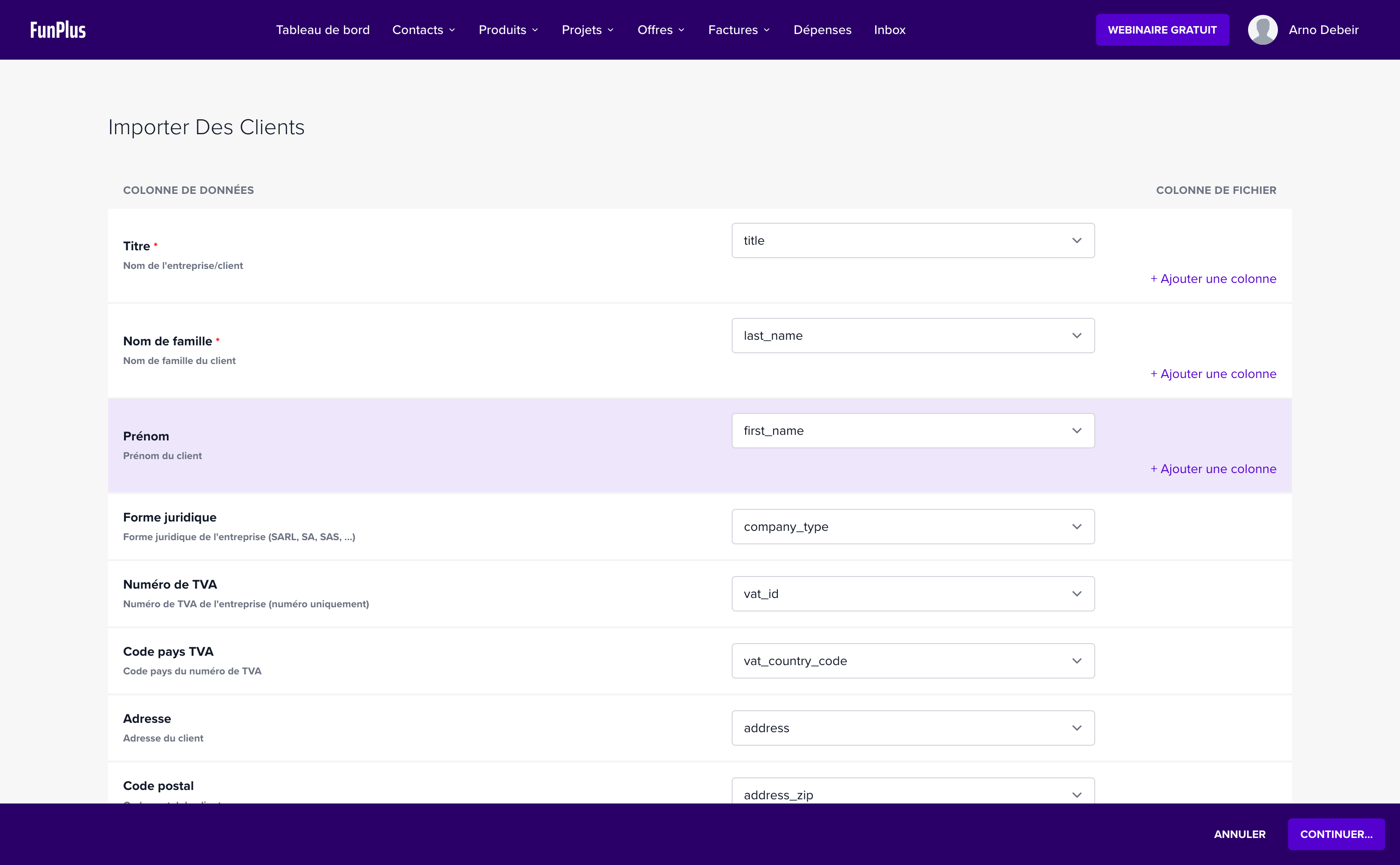 Après avoir téléversé votre fichier, l’écran de mappage des colonnes apparaît :