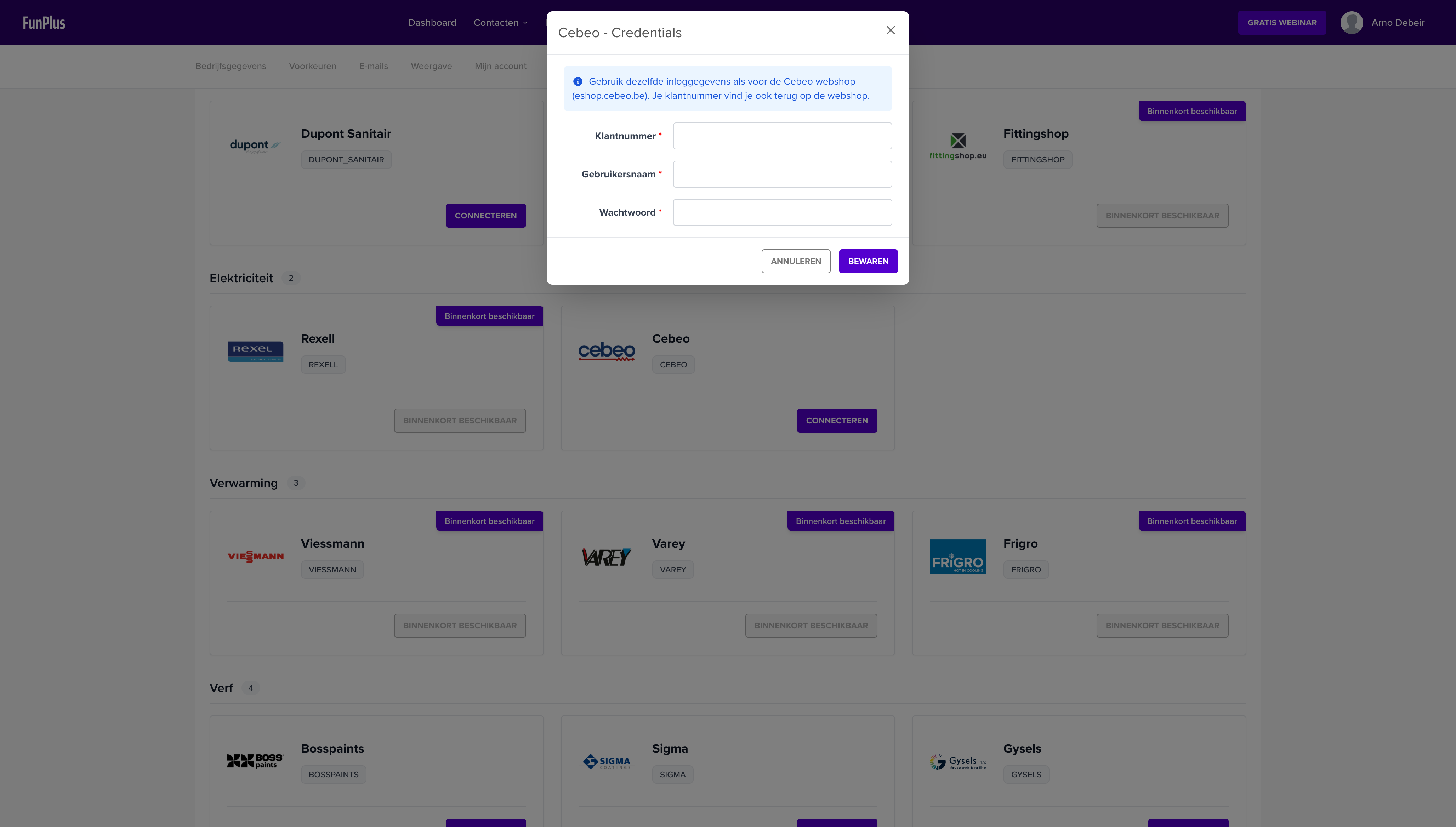 Let op: Dit zijn dezelfde inloggegevens waarmee je inlogt op de webshop van je leverancier (bijv. eshop.cebeo.be).